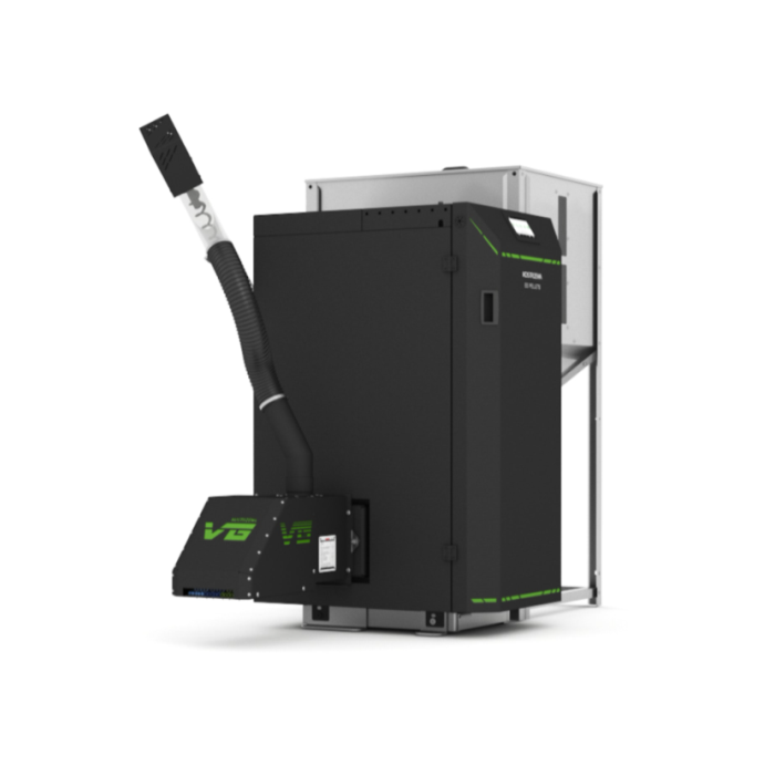 Możliwe jest również zastosowanie Vacuum Pellets, które pozwoli na magazynowanie większej ilości peletu i transportowanie go do podajnika kotła. Vacuum Pellets jest praktycznie bezobsługowe, gdyż wyposażenie go w czujniki monitorujące pozwala na automatyzację pracy. Podajnik można zaprogramować na dwa sposoby. Uzupełnianie do poziomu MAXIMUM po wykryciu poziomu MINIMUM lub uzupełnianie czasowe, gdzie odbywa się ono w czasie ściśle określonym przez użytkownika.