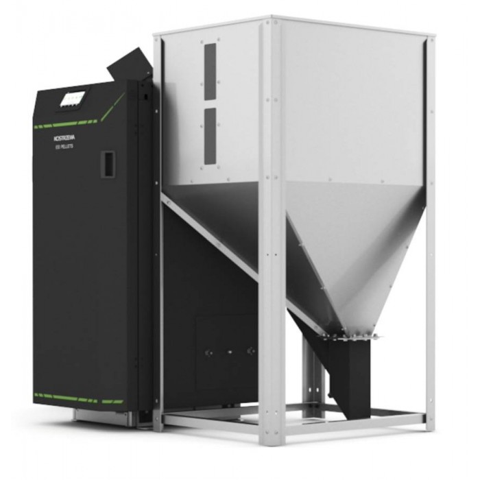 Kocioł EEI PELLETS marki KOSTRZEWA posiada certyfikat ECO DESIGN. Wbudowana komora ceramiczna znacznie zmniejsza emisyjność szkodliwych spalin do atmosfery oraz obniża emisję cząstek stałych do poziomu poniżej 20mg/m3.